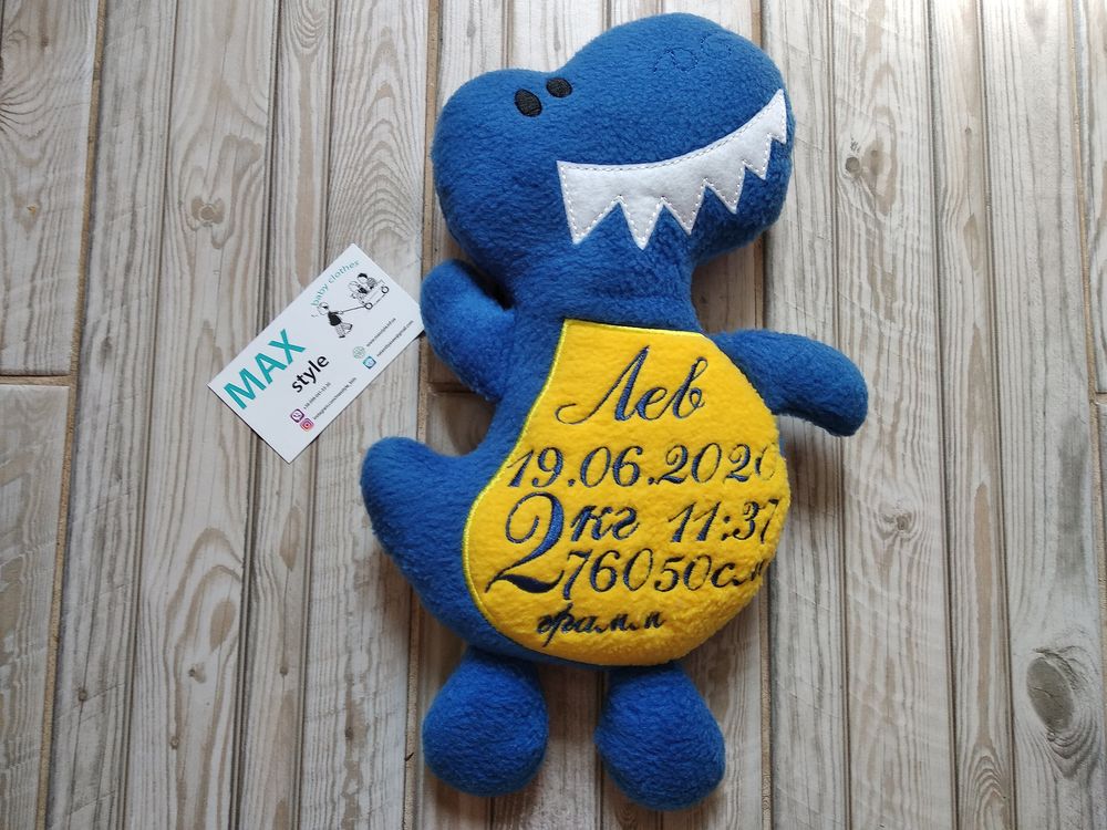 Розмір Динозаврика: повний близько 35 см, саме пузико під вишивку – 13,5х12,5 см.